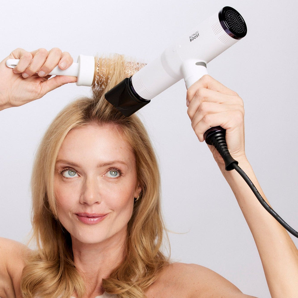 Bondi Boost Sonic Hair Dryer is a lightweight, super quiet, ultra-fast blowdryer is an Allure Best of Beauty award winner you need in your tools lineup! The Sonic Dryer is one of the speediest hairdryers in the market at 4 times faster than your average dryer. With three temp settings and three speed settings, the Sonic Dryer lets you take the wheel when styling, while ion technology helps to reduce frizz and boost shine. This babe is set to become your styling MVP – especially when you need to send that “10 min late” text, but actually, you just got out of the shower. Includes a concentrator + a diffuser.