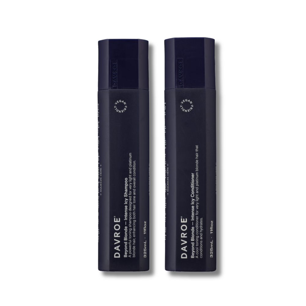 The shampoo resets yellow tones with Davroe’s Black Dye Complex to keep very light and platinum blonde looking ashier between salon visits. Blue Butterfly Pea and Black Mulberry extracts support softness so hair doesn’t feel stripped after washing. Follow with the hydrating conditioner: the same Black Dye Complex cools brass while Avocado, Grapeseed and Olive oils, Glycerin and Hydrolysed Quinoa help replenish moisture, improve slip and add shine.