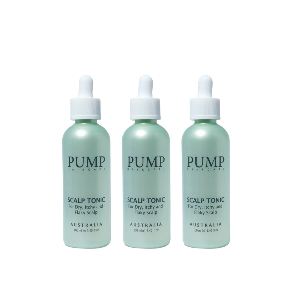 The Pump Scalp Tonic Trio delivers three full-size bottles of Pump’s best-selling, non-greasy tonic. Formulated with biotin, caffeine, niacinamide, and soothing botanicals like aloe vera and chamomile, this water-light leave-in treatment helps boost circulation, calm irritation, and support healthier, fuller-looking hair over time.